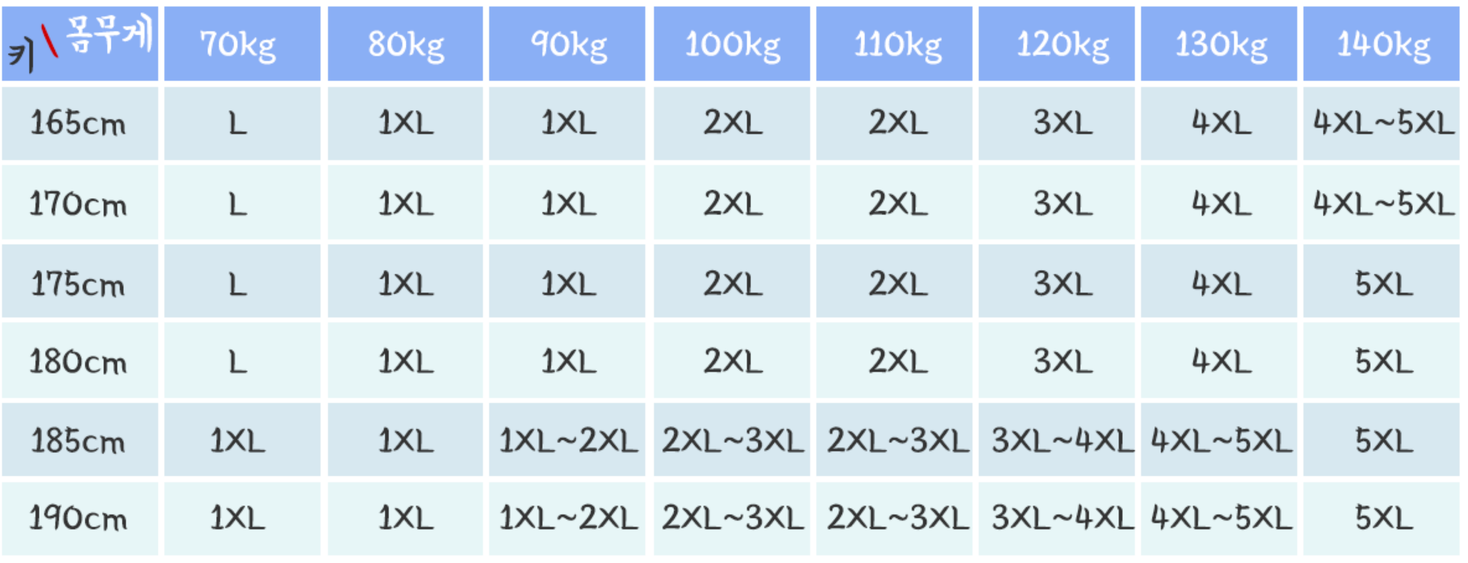 남성 빅사이즈 옷이 4XL사이즈까지 구비된 봉구네 옷장 입니다. 사이즈 가이드는 아래와 같아요. 다양한 사이즈가 구비되어 쇼핑하시기 편리하실 것 같아요. 스타일은 캐주얼로 편하게 입기 좋은 스타일의 옷이 많네요. 신상은 5% 할인된다고 하니 참고하세요.
