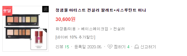 그리고 정샘물 컨실러 팔레트는 이사배님의 템에 꽤 자주등장하던 아이라 궁금 그린색이 너무 밝지 않고 잘 뽑힌거 같다.