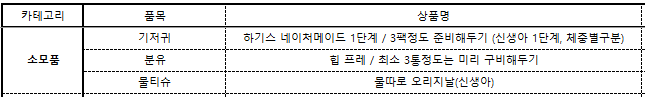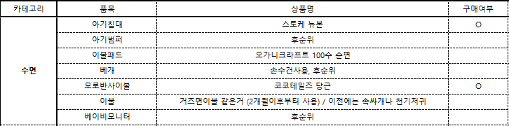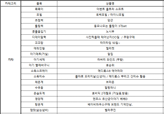 출산준비 카테고리별 육아용품 정리