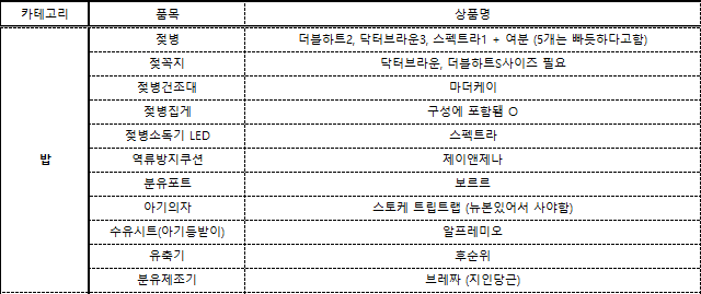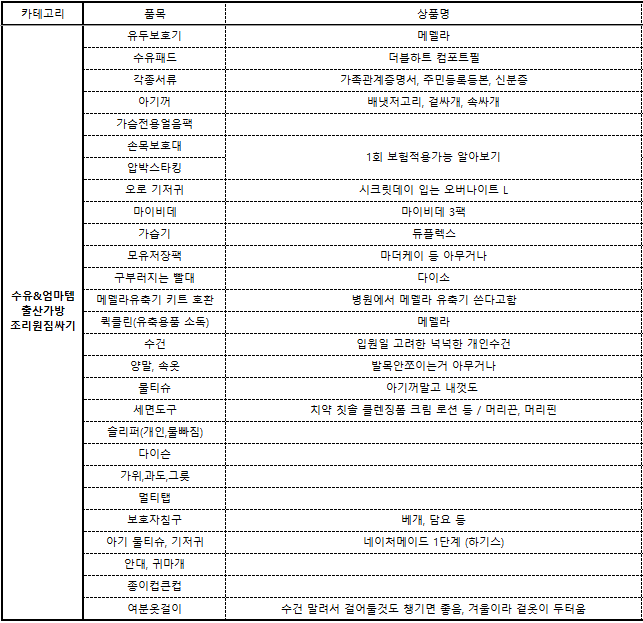 출산준비 카테고리별 육아용품 정리
